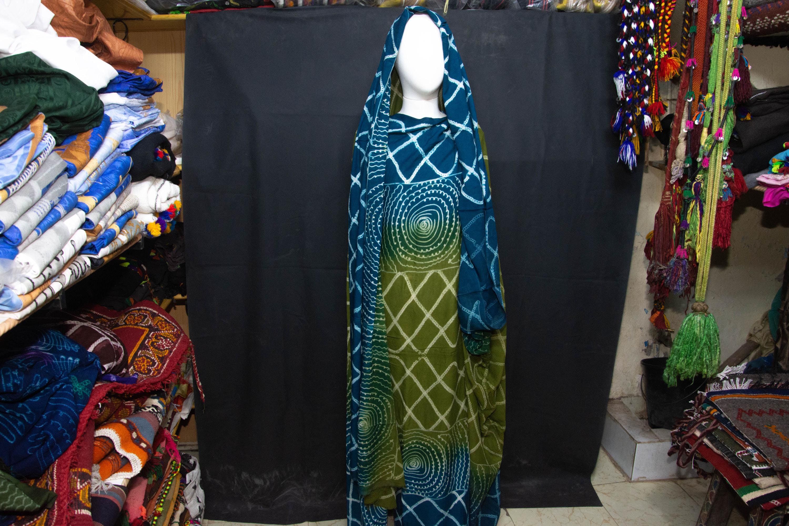 Wrap yourself in the timeless elegance of the Sahara with this authentic Melhfa. Traditionally worn by women across the desert, this versatile garment is more than just a dress—it is a flowing piece of art designed for grace, modesty, and protection from the sun.