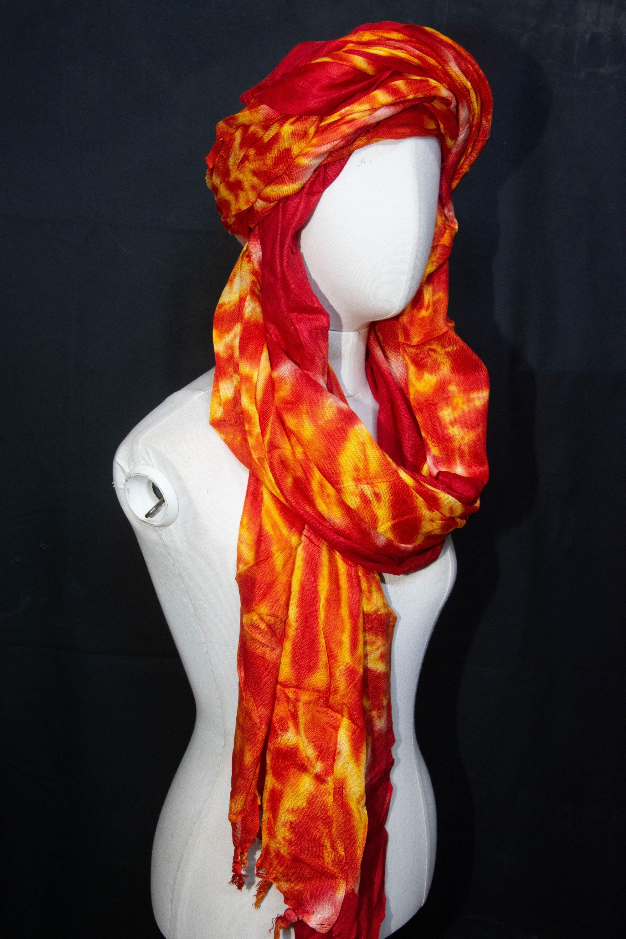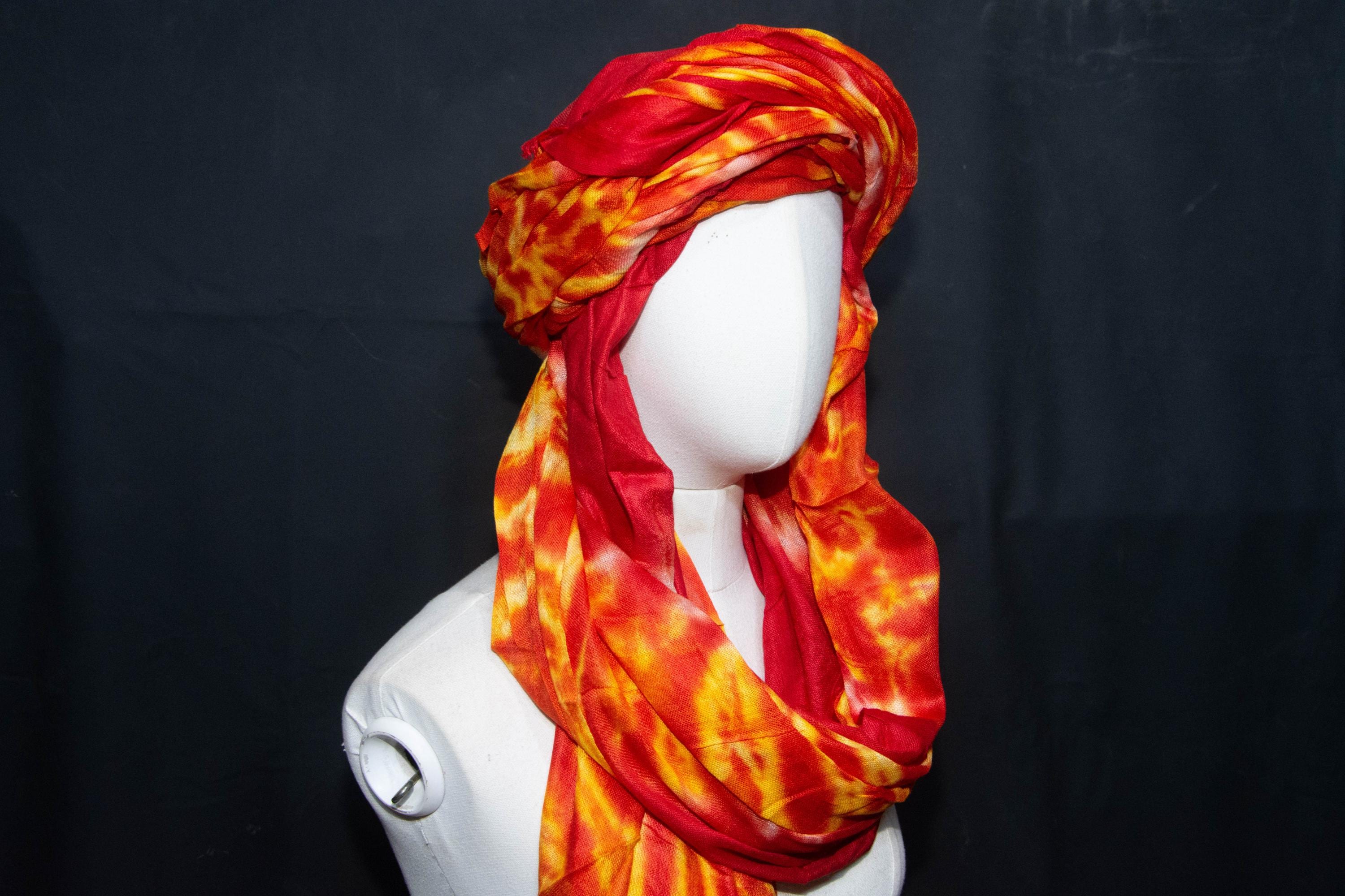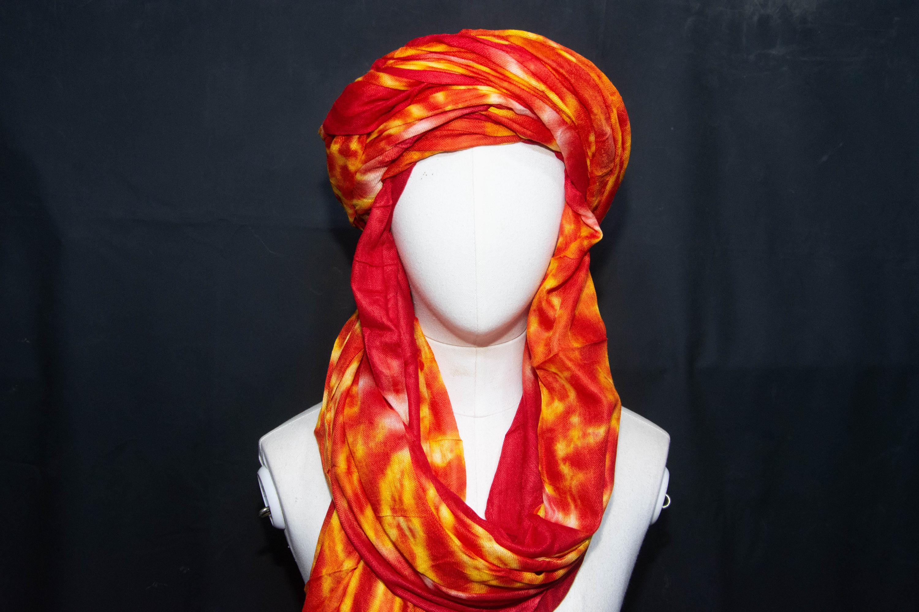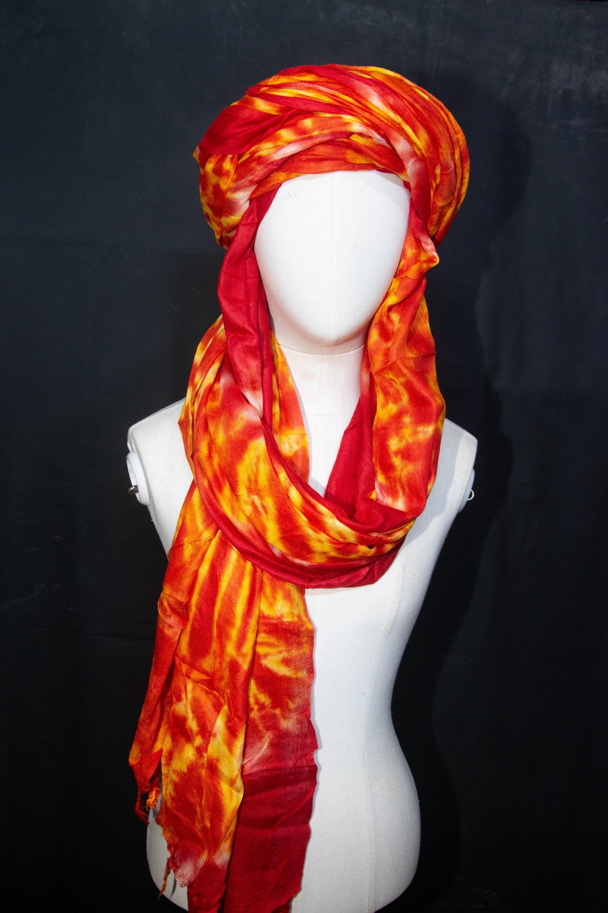 Traditional Tuareg Headwrap - Hand-Dyed Orange Scarf - Ethnic Sahara Desert Turban