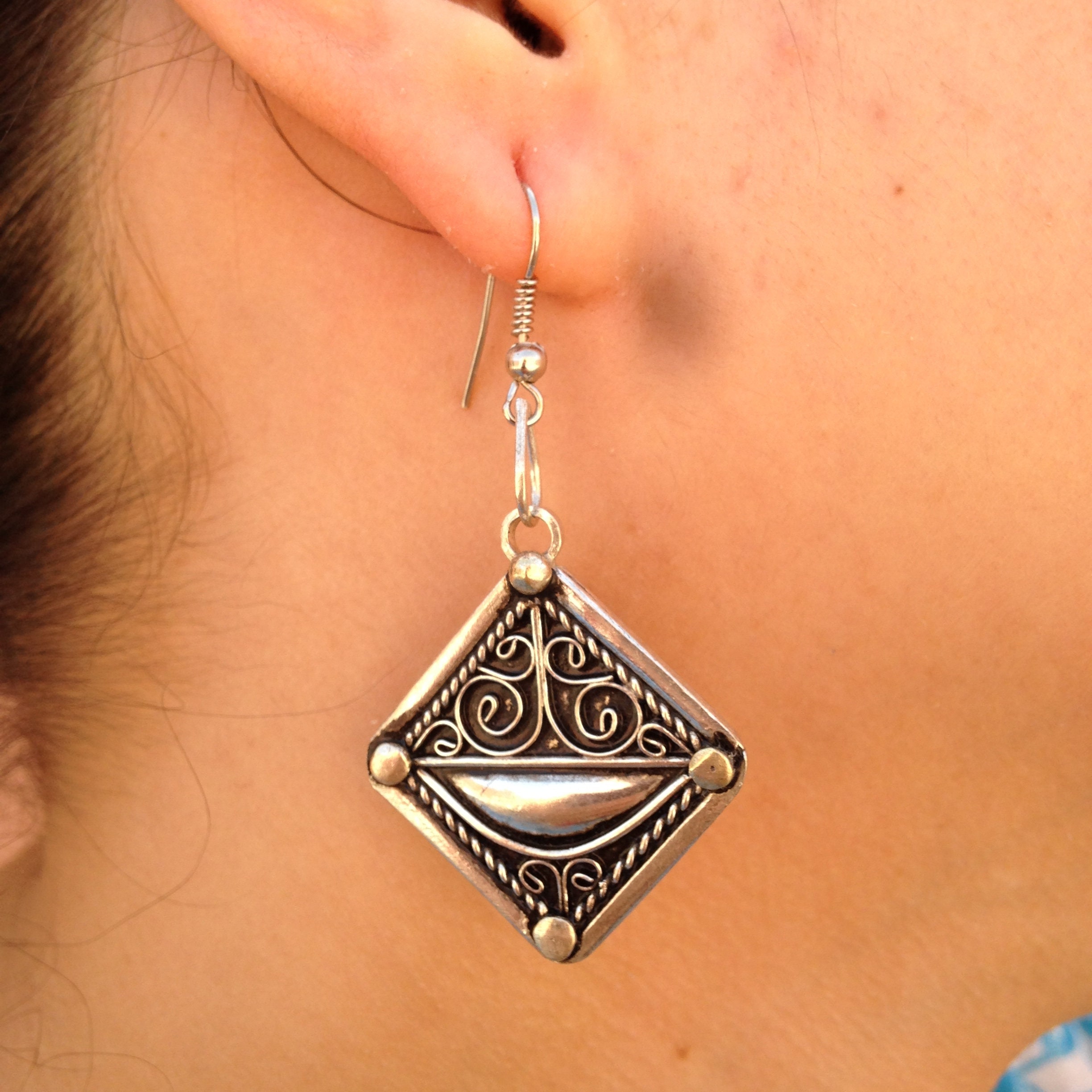 Pétale ethnique du tribal spirale gravée en argent sterling boucles d’oreilles touareg de long