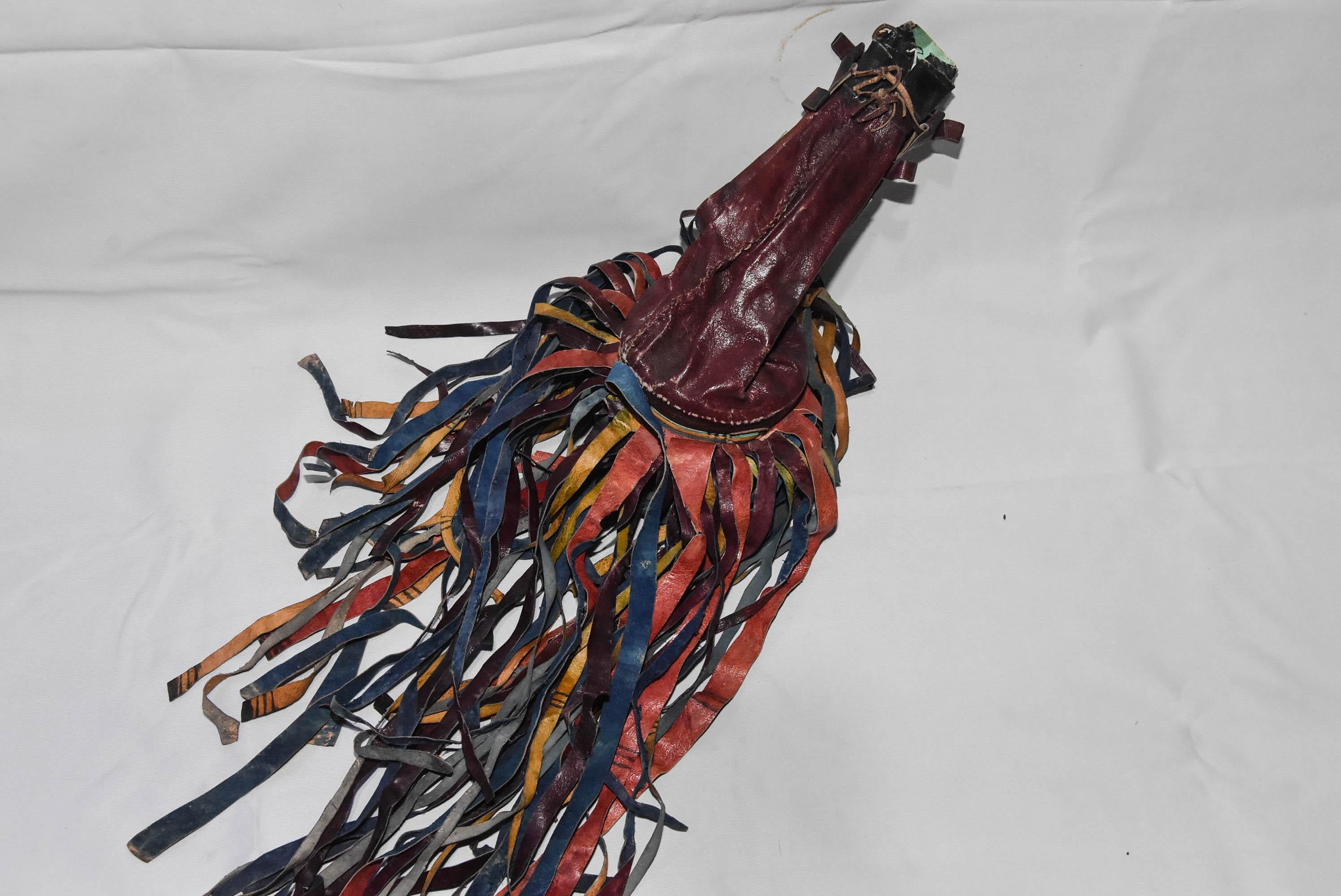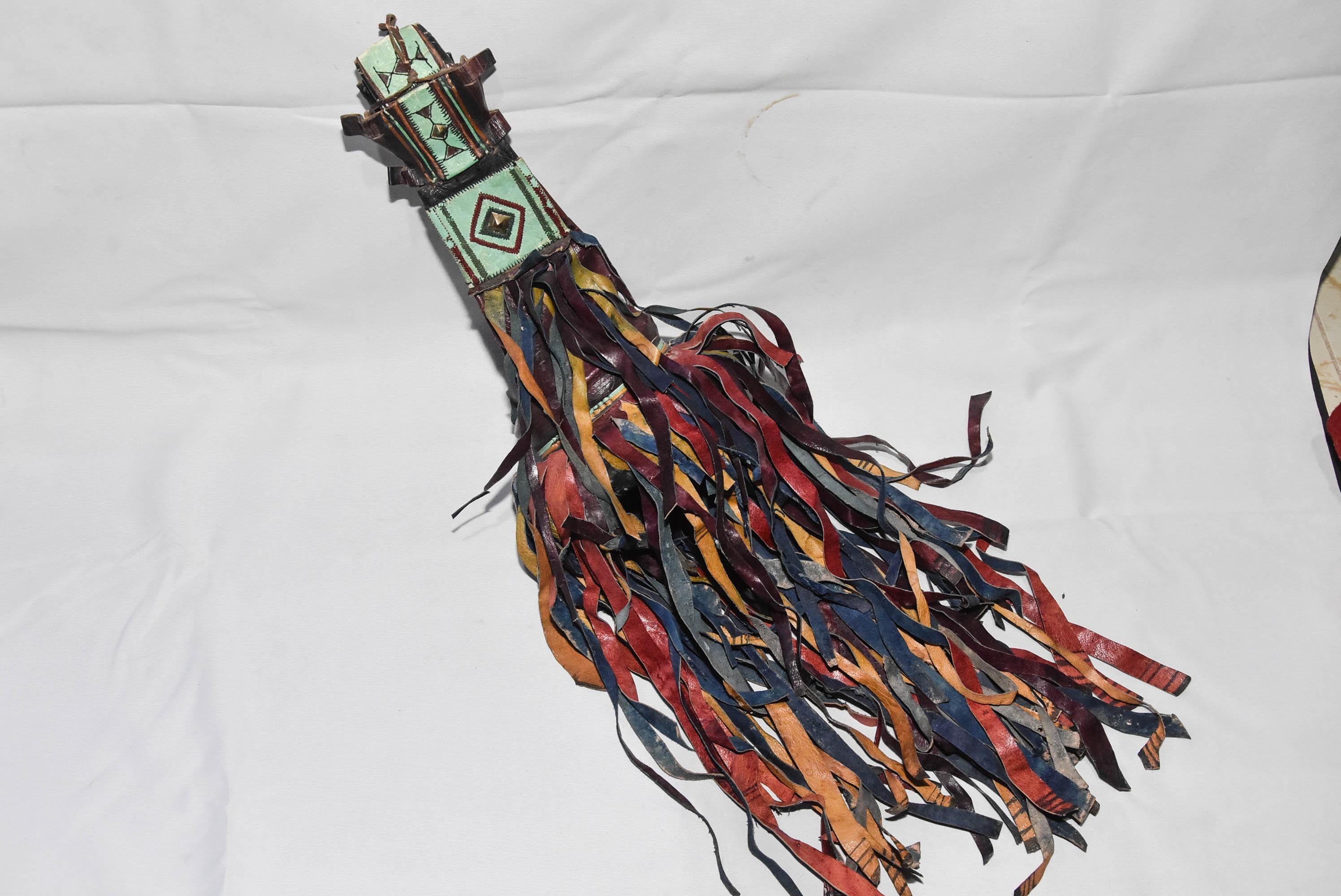 Exceptionally old and beautiful hanging, made from two different panels, painted with "magic square" designs.